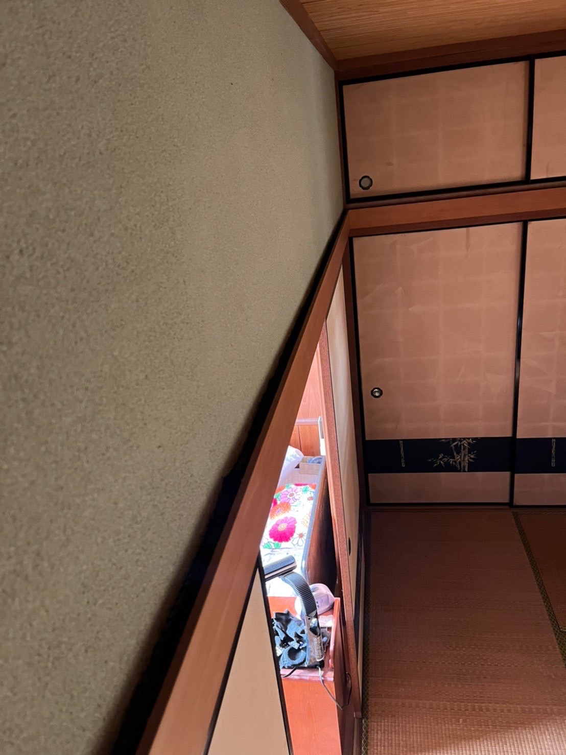 和天井に点検口新設工事だった為、薄いベニアが破れないよう慎重に点検口を作らせて頂きました。