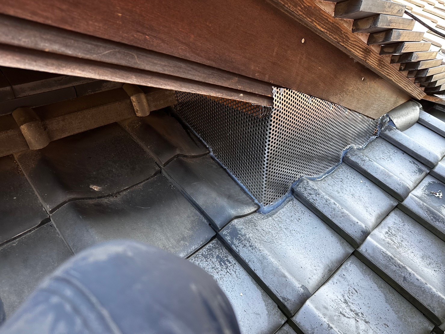 燻煙追い出し作業完了後外回りのイタチ、ハクビシンの侵入口になっている穴を全て弊社が使っております金網で隅々まで封鎖させて頂きました。