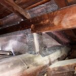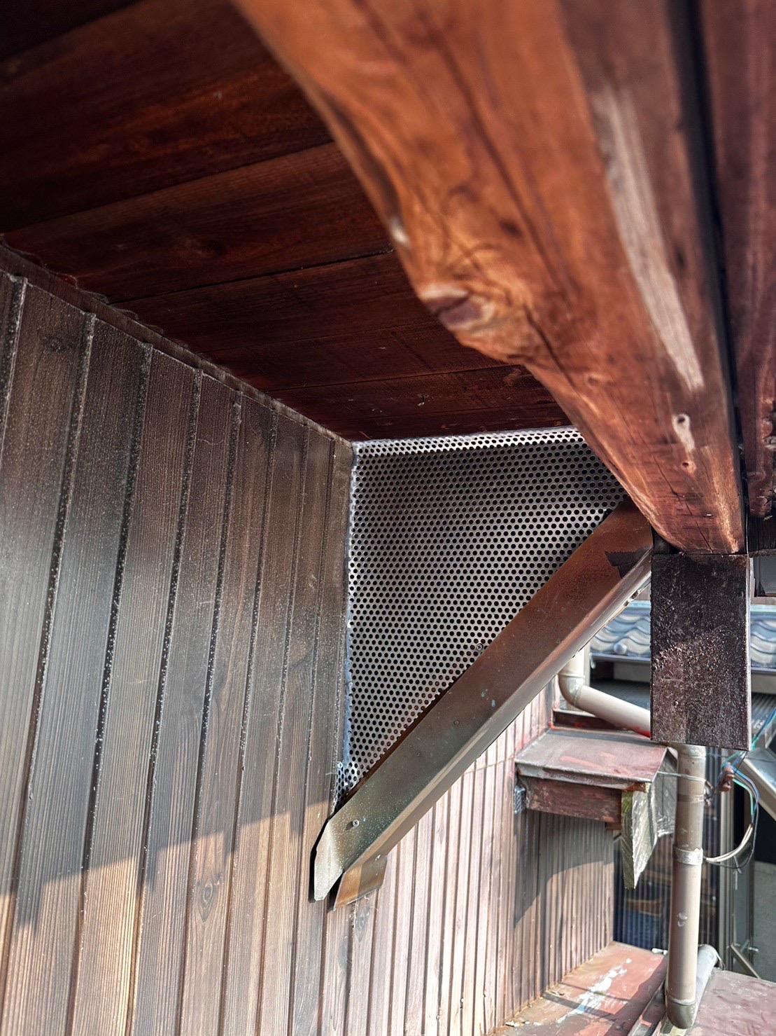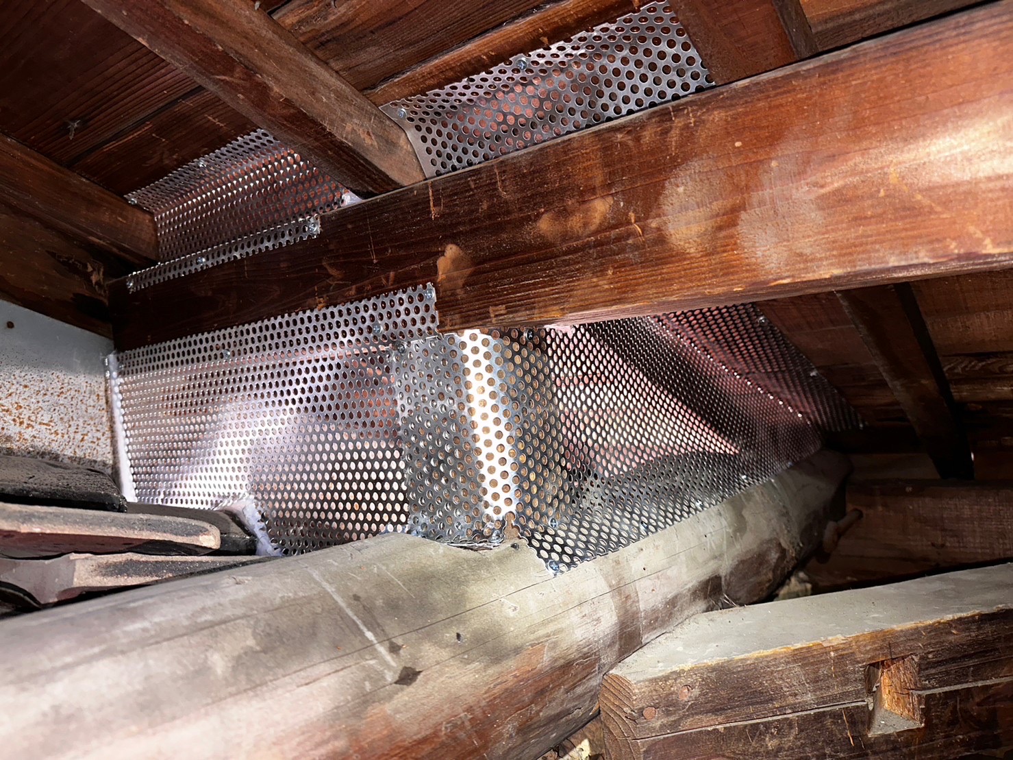 断熱撤去が終わり、テンの侵入口になっている穴を全て弊社が使っております金網で隅々まで封鎖させて頂きました。塞ぎ箇所がかなり多かった為、テンのメイン口になっている箇所以外の封鎖工事を1日目にできる限り作業し、1日目の作業が終わりました。