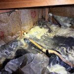 まずは点検工から天井裏に入り糞清掃をさせて頂いた後、二階天井裏、一回天井裏、床下で燻煙追い出し作業を行いました。