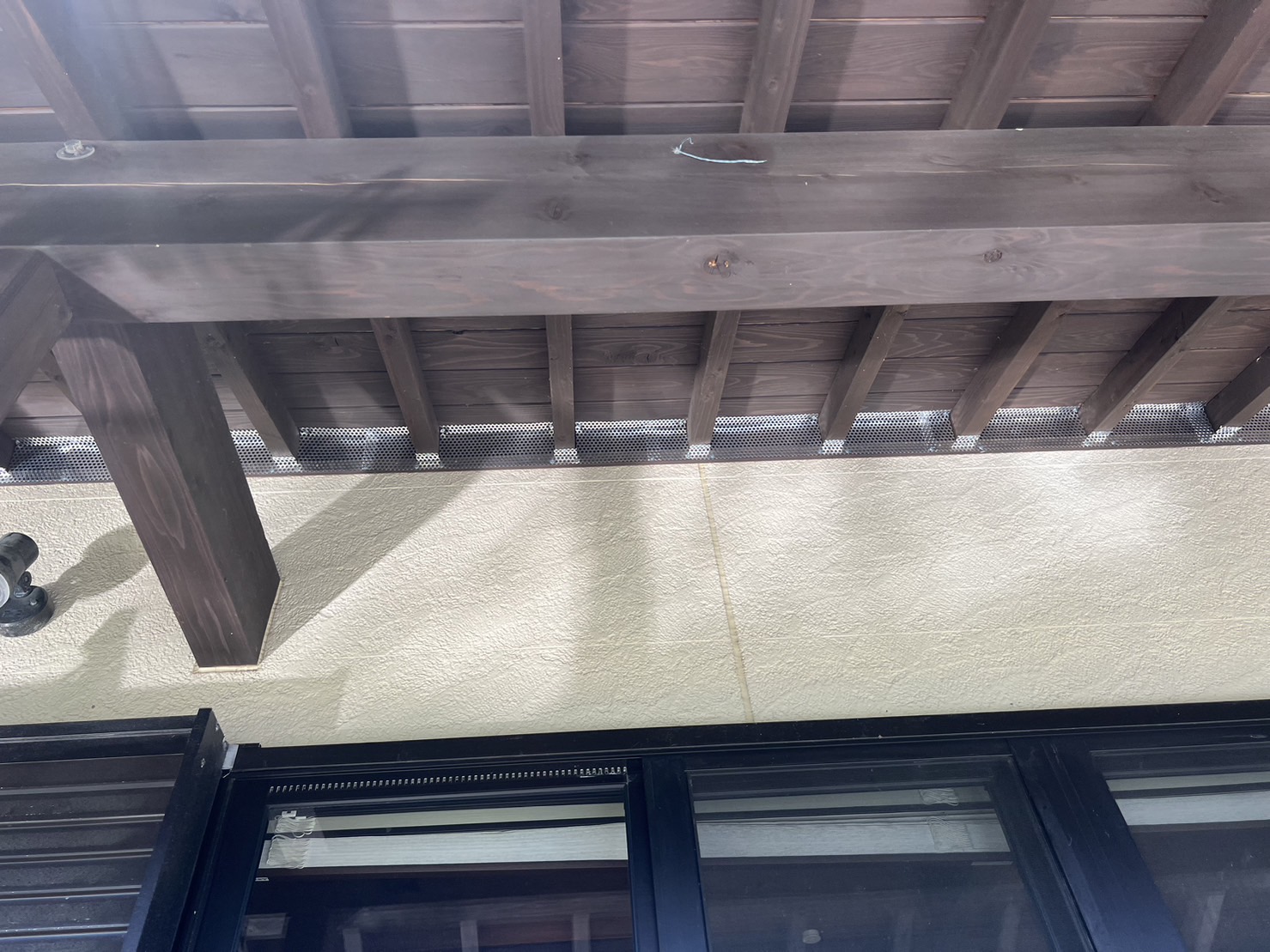 K様のお家では、糞害の程度から天井裏にコウモリが生息していると言うよりかは、軒下と外壁との間に出ている、梁と梁の間から外壁の間に入って住んでいる個体が非常に多いと断定できました。
