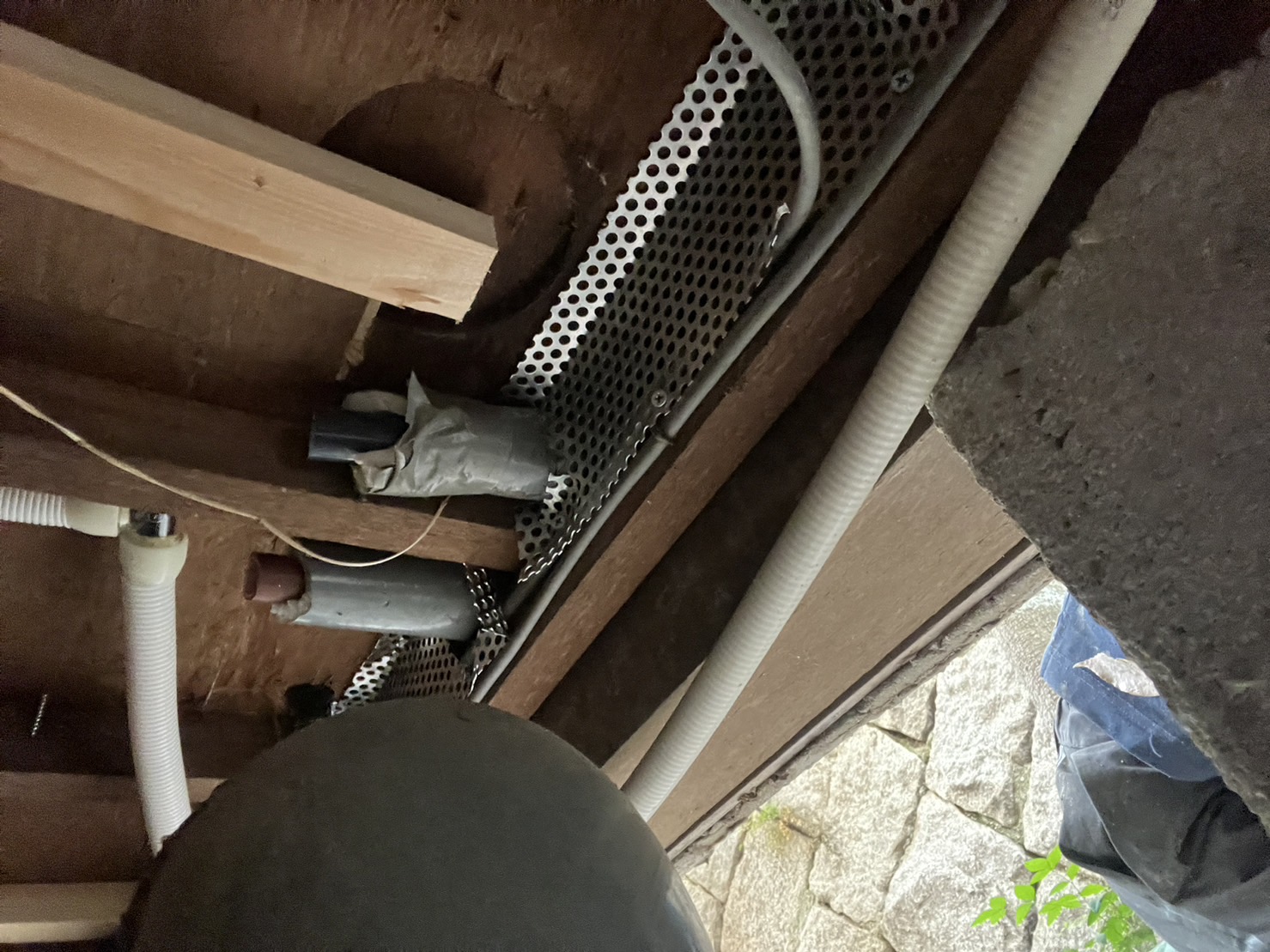 追い出し作業完了後に、外部侵入口封鎖工事を行いました。H様宅では、下回りに侵入口が集中していたため、見落としの無いようしっかりと確認をしつつ封鎖を行いました。