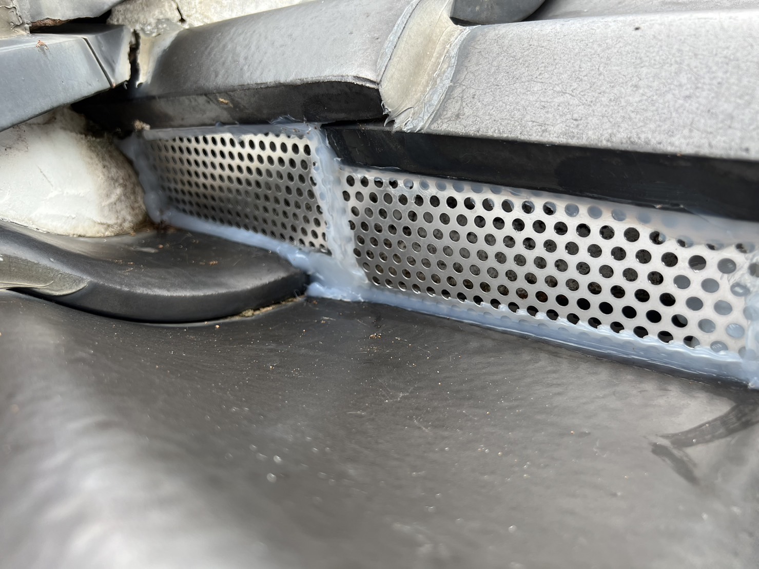 1階と2階の入母屋の両脇に穴がありそちらをパンチングメタルとコーキングを使用して塞ぎ、完工となりました。