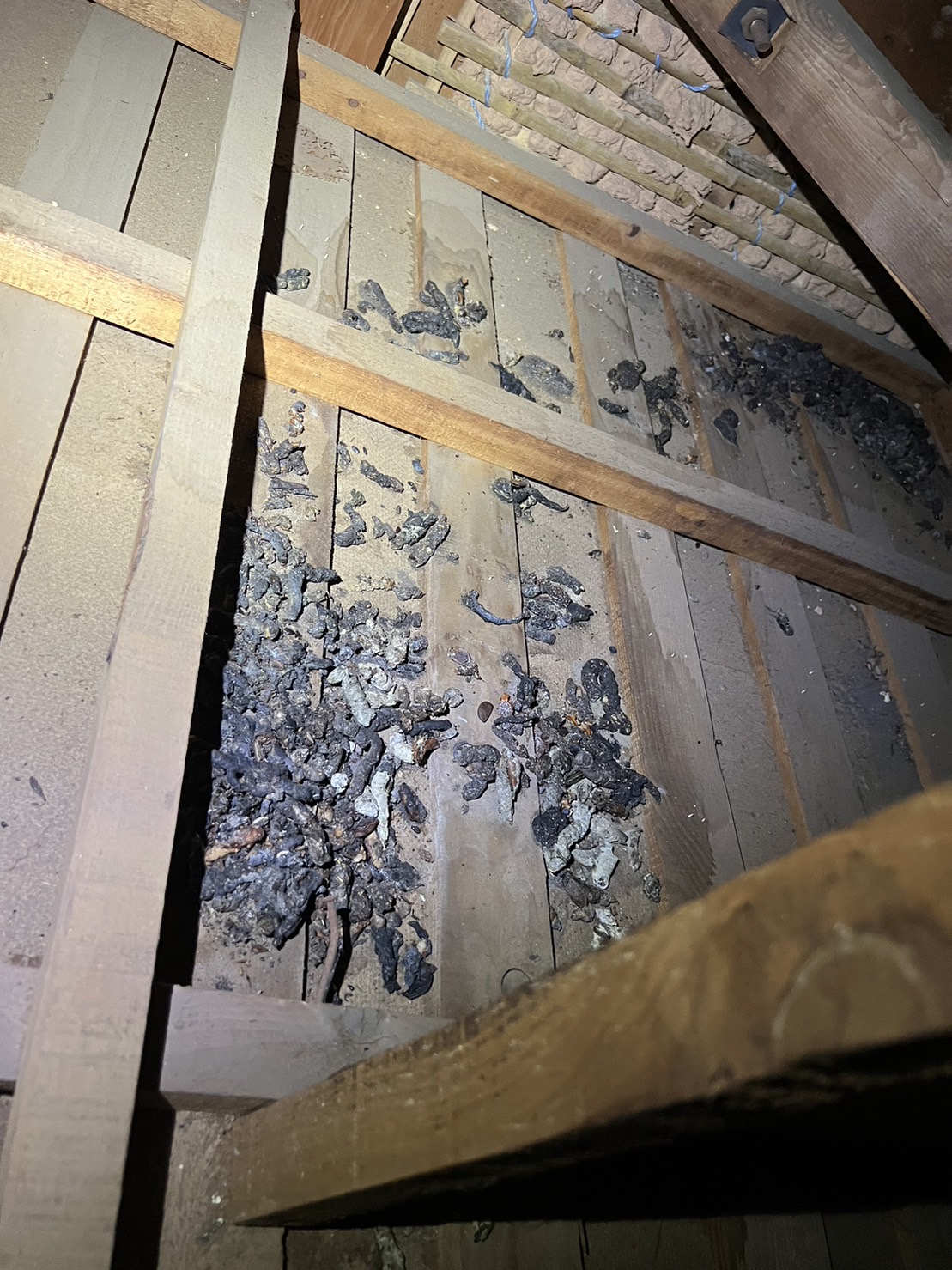 まずはじめに、1階と2階の天井裏糞清掃を行いました。