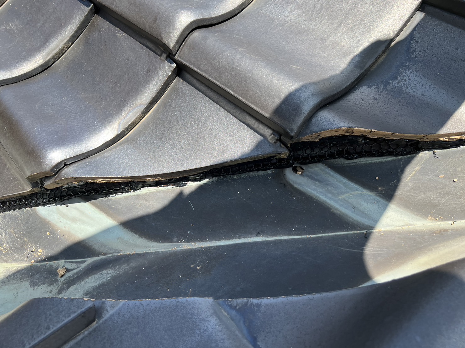 瓦と瓦の重なり部分も同じく同じ材料を使用して塞ぎました。