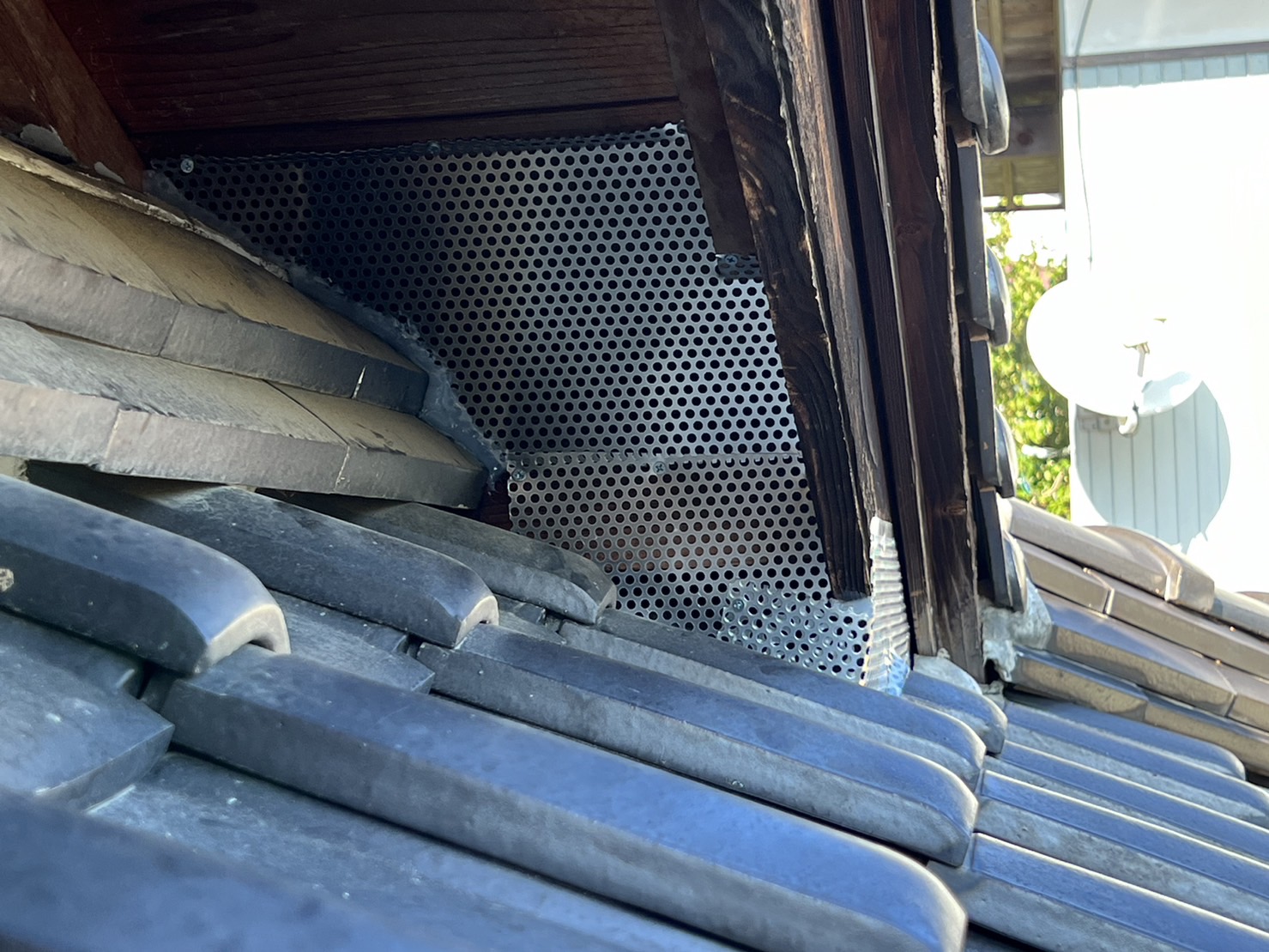 入母屋はパンチングメタルとコーキングを使用して塞ぎました。
