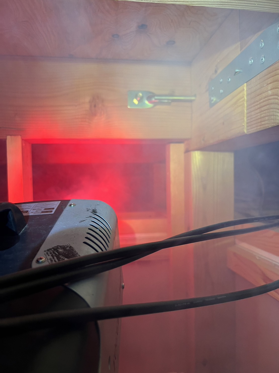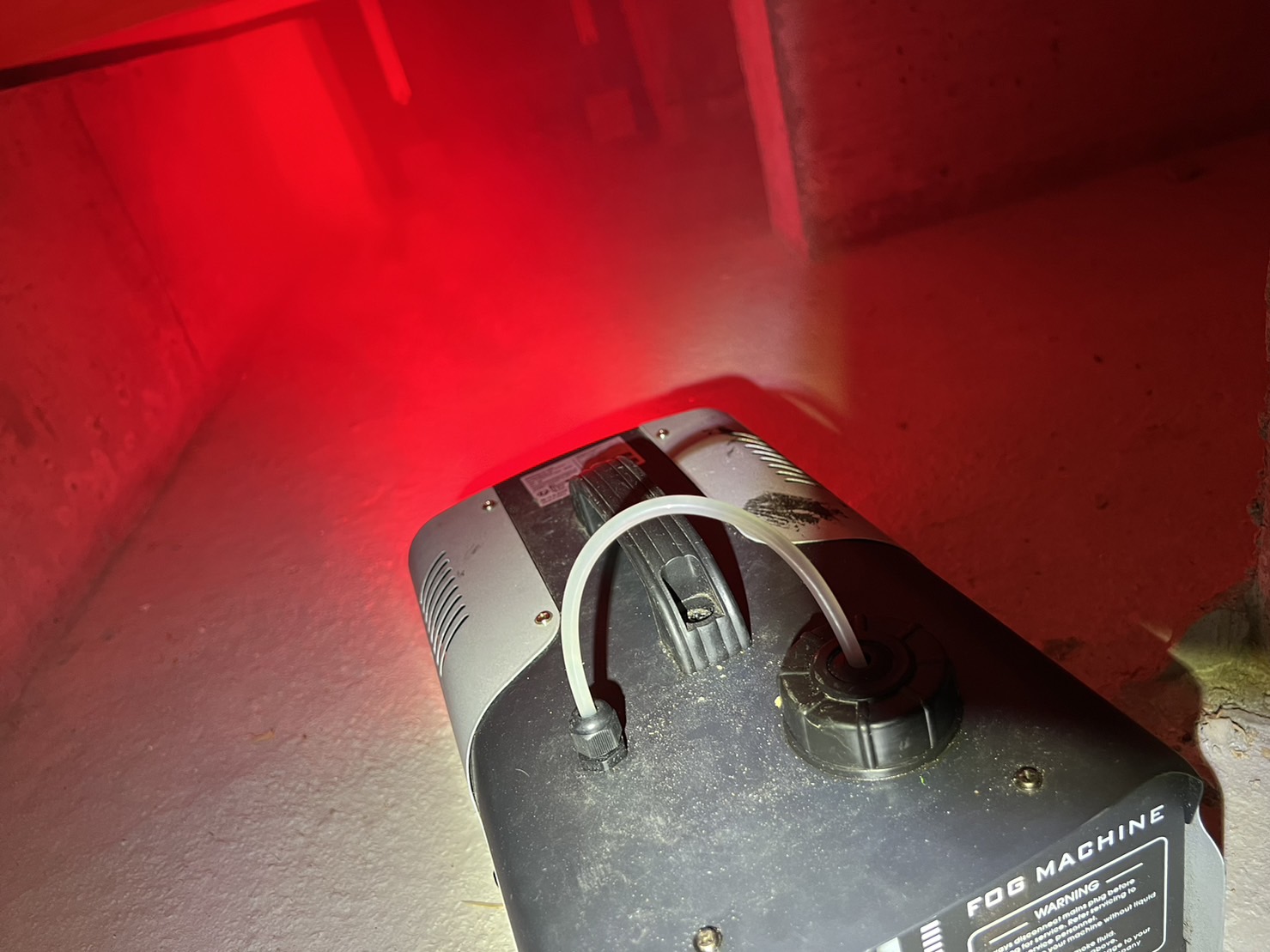 天井裏糞清掃が終わり燻煙追い出し作業を行いました。