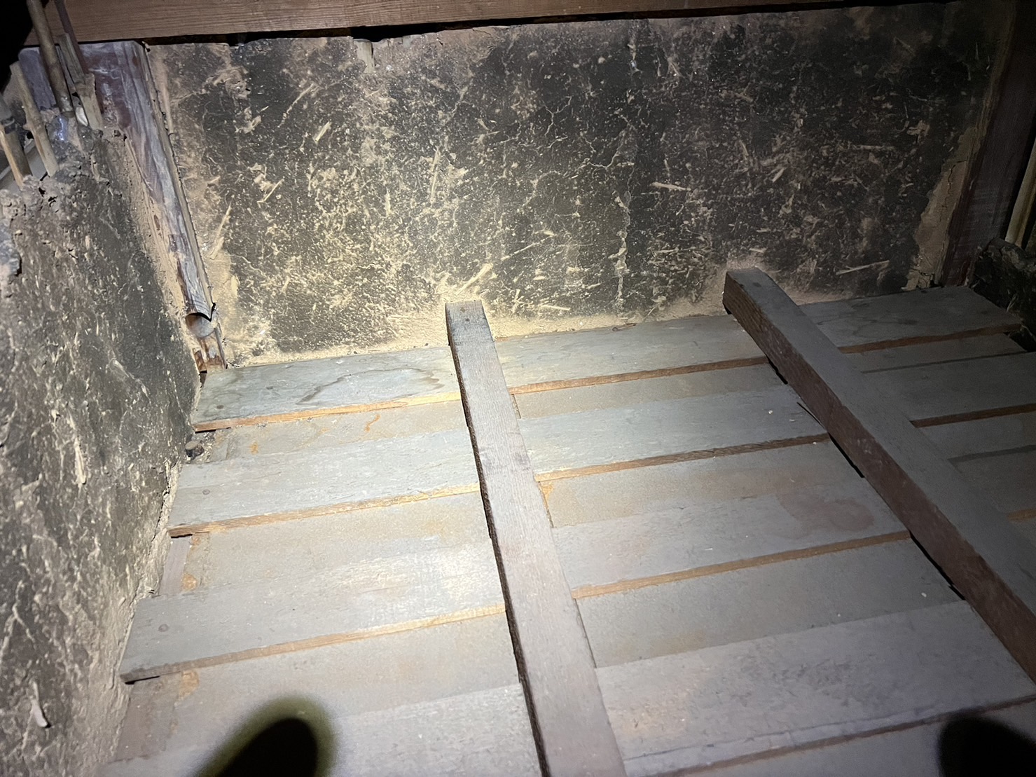 外部侵入口封鎖工事が終わり、天井裏糞清掃を行いました。
