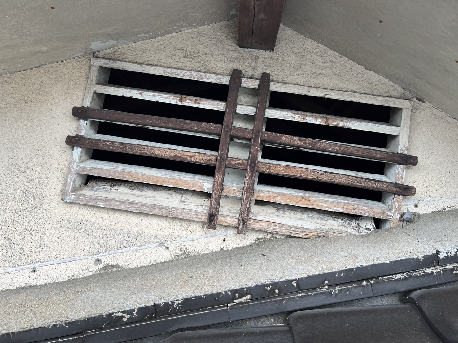 封鎖箇所はお家の基礎の部分にある通風口、屋根を支えている梁の隙間、屋根裏に繋がっている通風口、瓦と瓦が重なった所の穴などでした。
