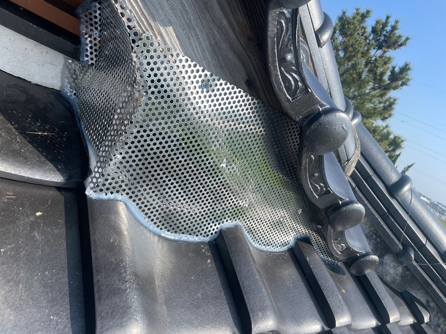 今回のお家は日本建築の建物だった為、入母屋、床下痛風口をメインで封鎖させて頂きました。